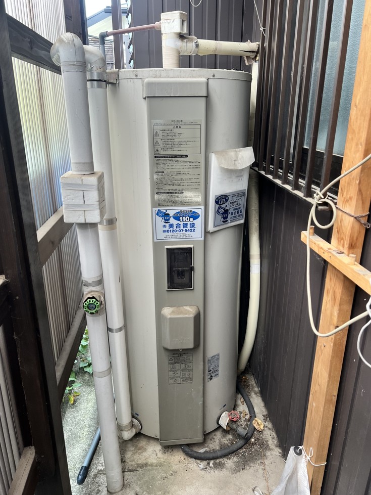 セキスイ 460L 丸形 → 三菱 SRG-465G 丸形 今回は、電気温水器でお湯が沸いていないと連絡があり出向しました。調査の結果、電気系統の故障でわいていませんでした。 メーカー廃盤品のため、修理不可で取り換えることになりましたが、工事までに仮修理行い対応しました。 取替工事自体はスムーズに進み、その日の夜にはお湯を使えるようにできました。 |